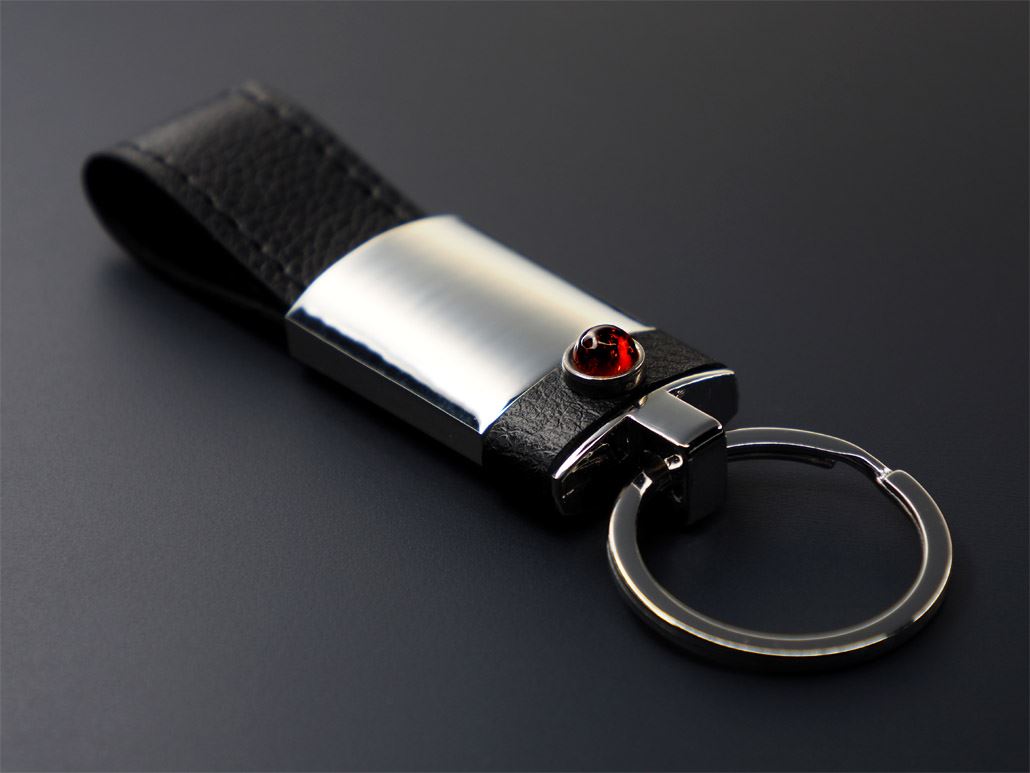 - Sisältää nahkaisen avainrenkaan